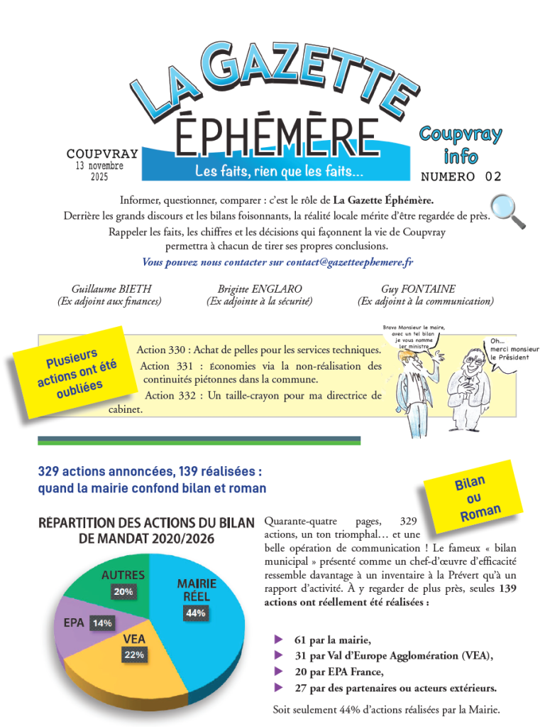 Rappeler les faits, les chiffres et les décisions qui façonnent la vie de Coupvray permettra à chacun de tirer ses propres conclusions.